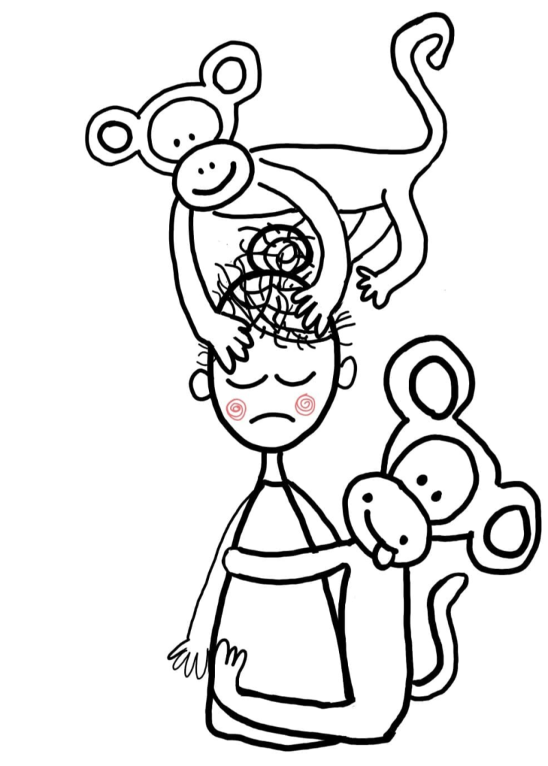 Monkeymind is een term die ontstaan is in het boeddhisme. We slingeren van gedachte naar gedachte, van emotie naar emotie. En dit is niet goed voor ons. Die constante storm in ons hoofd zorgt ervoor dat we geen aandacht hebben voor het goede en dat we last krijgen van angst- en negatieve gevoelens. Ons piekersysteem is een handig overlevingsmechanisme maar in onze huidige maatschappij, die smeekt om onze aandacht, is het een beetje dolgedraaid. Beeld je schreeuwende en vechtende apen in die in het rond slingeren en krijsen. Of toch liever niet?